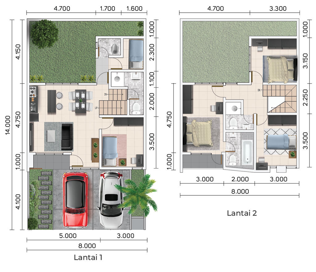 Luas Bangunan 88 m2 / Luas Tanah 72 m2